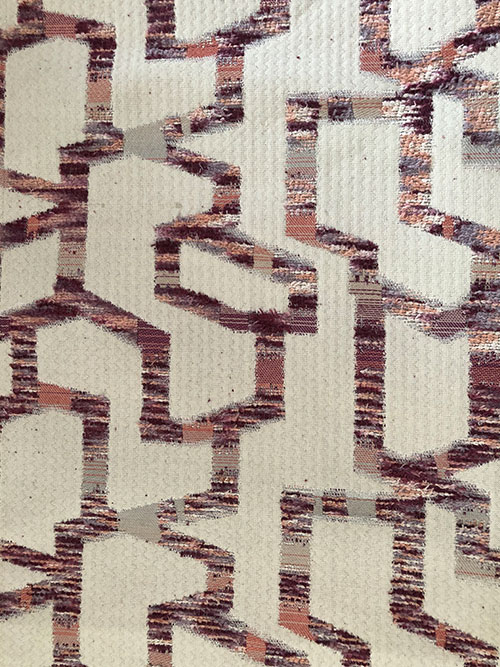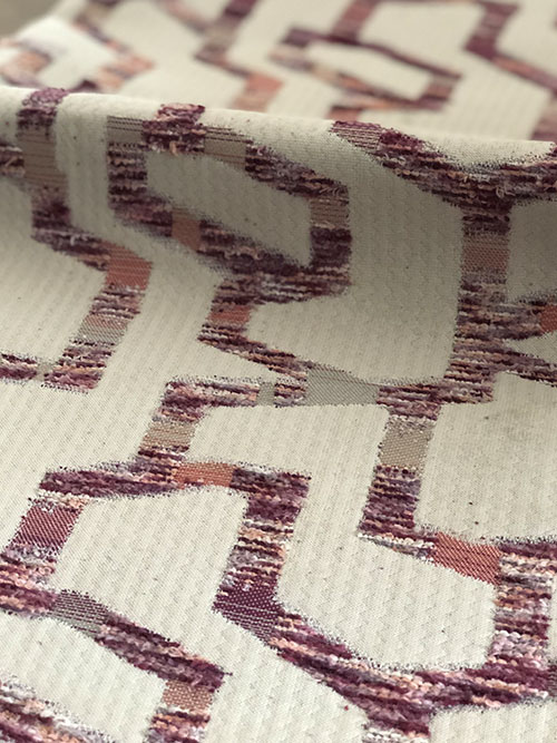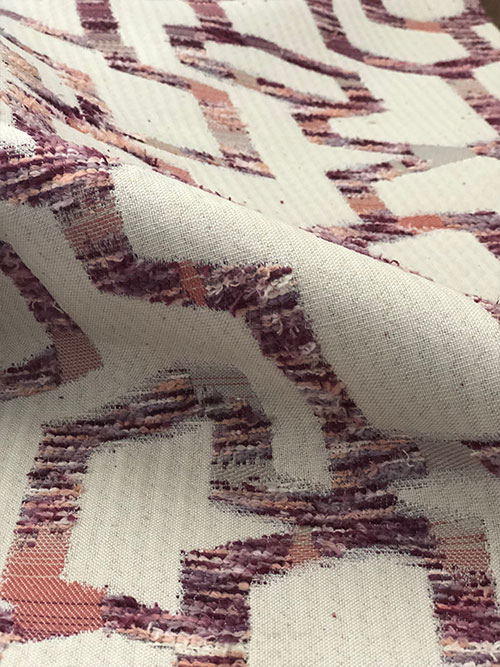 This is a irregular polygon-shaped type of dirt-proof, wear-resistant and eye-catching decorative fabric. It is woven with section-dyed feather yarn using special jacquard technology. It has the unique characteristics of this special yarn: plush layers and a wonderfully smooth feel. A natural color system is used to achieve the design, which reveals fully the perfect integration of modern and classical atmosphere. It is the best choice for use in the home, such as with chairs, sofas or cushions.
