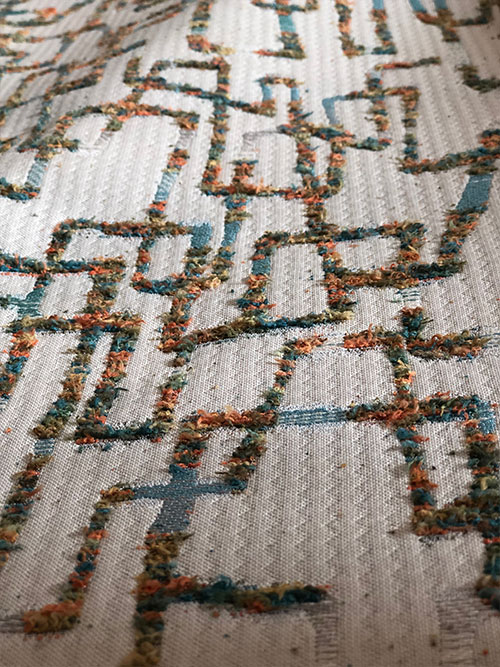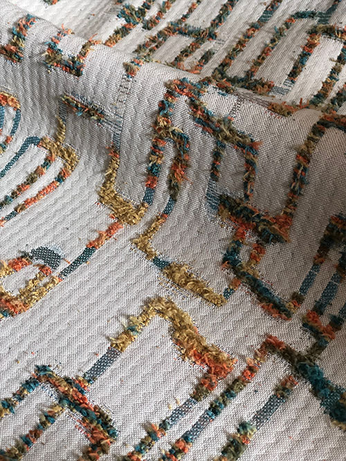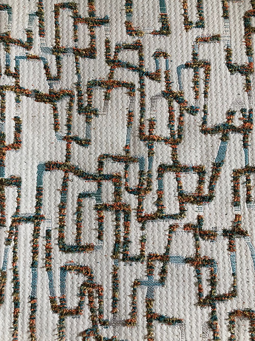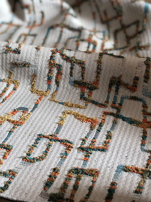 This is a mysterious maze-shaped type of dirt-proof, wear-resistant and eye-catching decorative fabric. It is woven with section-dyed feather yarn using special jacquard technology. It has the unique characteristics of this special yarn: plush layers and a wonderfully smooth feel. The color palette includes both quiet natural shades and strong, bold combinations which make it the best choice for use in the home, such as with chairs, sofas or cushions.
